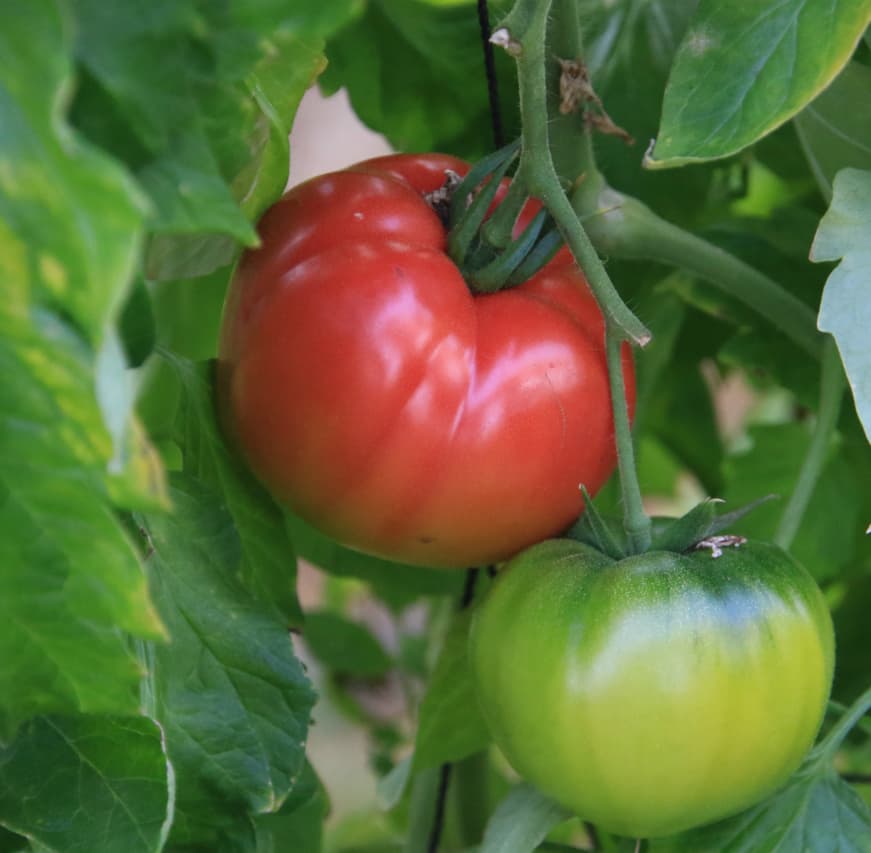 緑が美しく生き生きとピンと立ったヘタ、適度なシャキッとした野菜の歯ごたえが気持ちいいのは畑で完熟して赤くなったトマトが新鮮である証し。