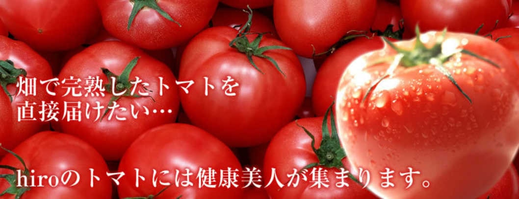 | 2024.03.01 | 今季のトマトは異常気象の影響で園主が満足できる品質に至らないためネット販売は行いません。何卒ご容赦くださいますよう宜しくお願い致します。 |